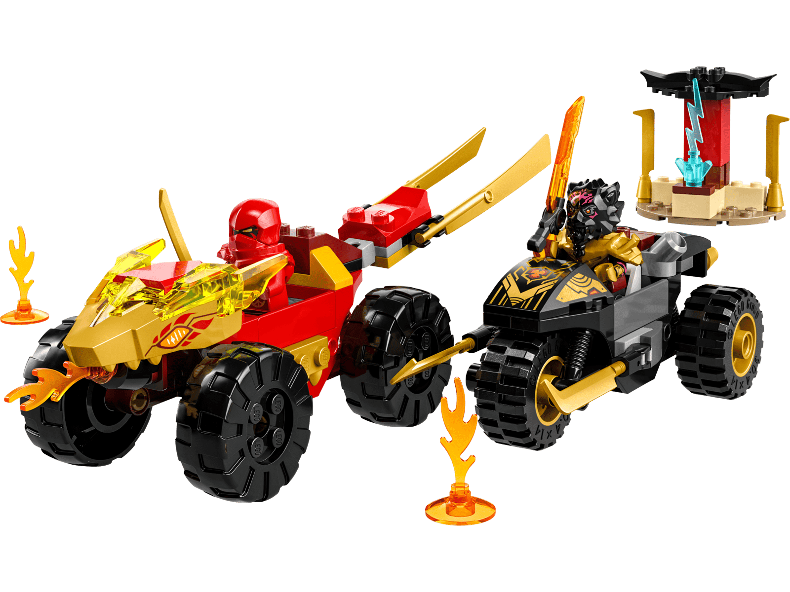Le combat en voiture et en moto de Kai et Ras